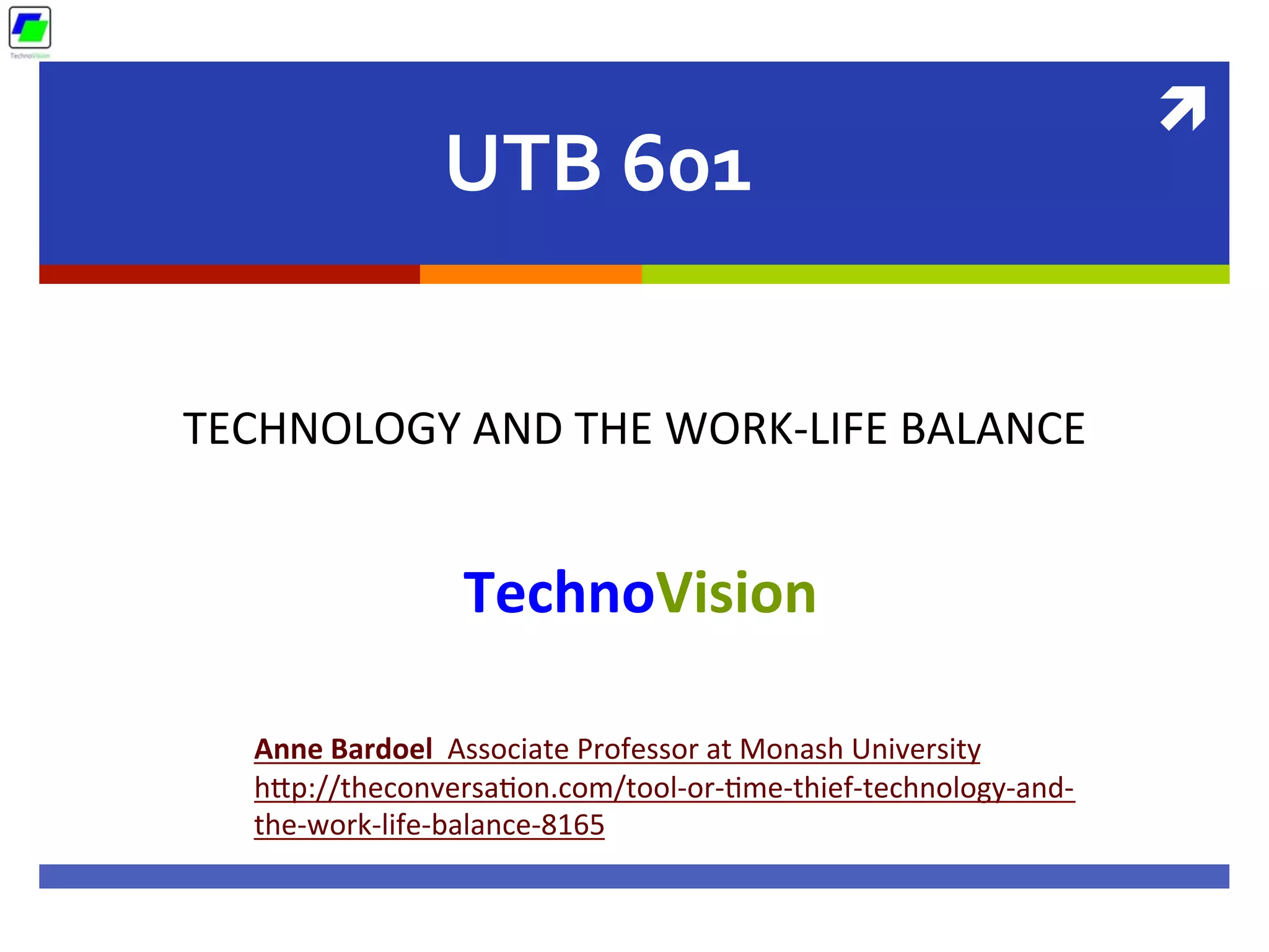 The document discusses how technology has impacted work-life balance. It notes that while technology was predicted to reduce working hours and allow more leisure time, today many people feel they must be available for work at all hours due to mobile devices and constant connectivity. This has blurred boundaries between work and personal life. The document considers different types of technology users and whether future trends will improve or worsen work-life balance, concluding we are at an important point in time to ensure technology does not dominate our lives.