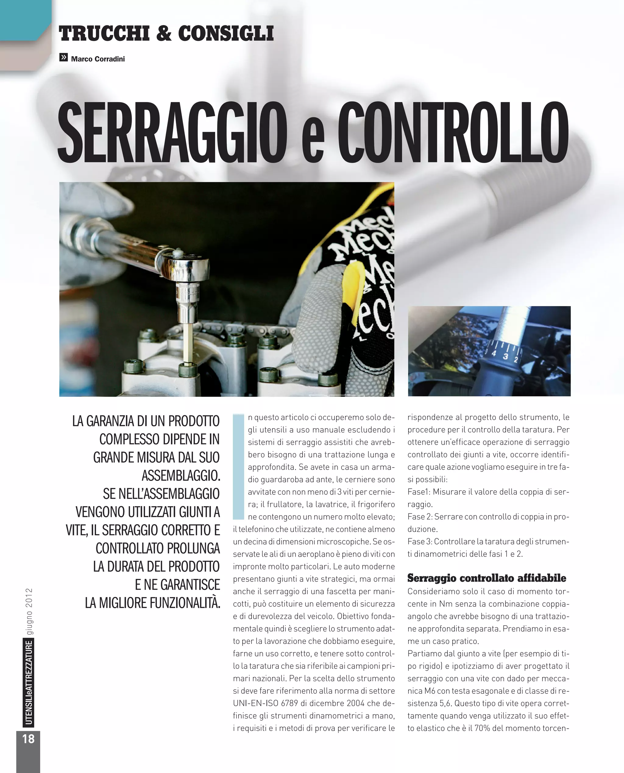 Il documento tratta delle procedure di serraggio e controllo dei giunti a vite, evidenziando l'importanza di utilizzare strumenti dinamometrici correttamente per garantire un'adeguata taratura e sicurezza. Vengono descritte le varie classi e tipologie di strumenti dinamometrici, le loro funzionalità, e le normative da seguire per il loro utilizzo. Infine, si sottolinea la necessità di conservare e mantenere gli strumenti in modo appropriato per evitare errori durante le operazioni di serraggio.