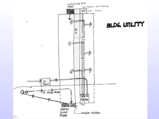 The document discusses the key considerations for various utility systems for a site including potable water supply and fire protection sources and quality, drainage systems for sanitary and storm water including disposal methods, electrical power sources and distribution, mechanical systems for vertical transportation and HVAC, acoustical technologies, and automation systems for surveillance, communication, and computers. Location of systems on site, types of construction, zoning regulations, load requirements, and costs are also covered at a high level.