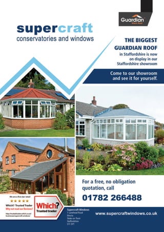 The document promotes Target Windows as the go-to provider for affordable orangeries, emphasizing their approval as installers for the 'livin room' range by Ultraframe. It also features a personal reflection by the editor, Nigel Titterton, on family and life experiences, celebrating the birth of his grandchild and the wisdom passed down from his father. Additional advertisements for local businesses and services are included, showcasing the vibrant community spirit in the Uttoxeter and Cheadle areas.