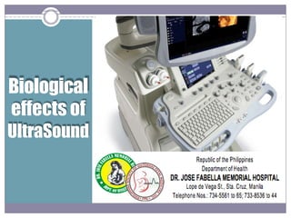 Ultrasound can cause biological effects through thermal and non-thermal mechanisms. Thermal effects are caused by ultrasound energy being absorbed and converted to heat, while non-thermal effects include cavitation and direct mechanical effects. While some studies have reported associations between ultrasound exposure and fetal effects, most clinical studies have found no biological effects, even at higher intensities. Regulatory bodies have established safety indices and output limits, and recommend using the minimum exposure needed for diagnosis. Overall, diagnostic ultrasound is considered safe when used prudently according to established guidelines.