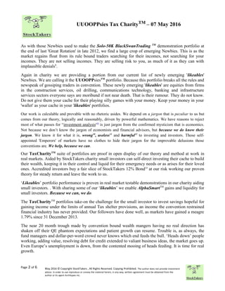 The document outlines a portfolio strategy based on 'likeables,' equities that are considered undervalued and have the potential for long-term gains. It criticizes conventional financial practices as risky and ineffective, asserting that investors should rely on balance sheet analysis and the proprietary 'risk price' metric to make informed investment decisions. The author emphasizes the importance of self-directed investing and provides a sample portfolio that can help small investors grow their wealth while avoiding common pitfalls in the financial industry.