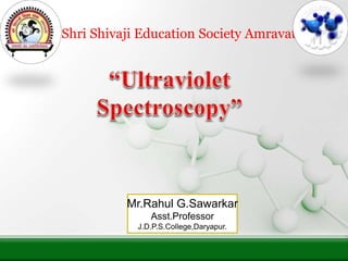This document provides an overview of UV-visible spectroscopy and how it can be used to analyze conjugated systems. It discusses the different types of electronic transitions that can occur, and how solvents, conjugation, and substituents affect absorption properties. Woodward-Fieser rules are presented for predicting absorption maxima of conjugated dienes and α,β-unsaturated carbonyl compounds based on their structural features. Examples are given to demonstrate how to apply the rules to calculate expected absorption wavelengths.