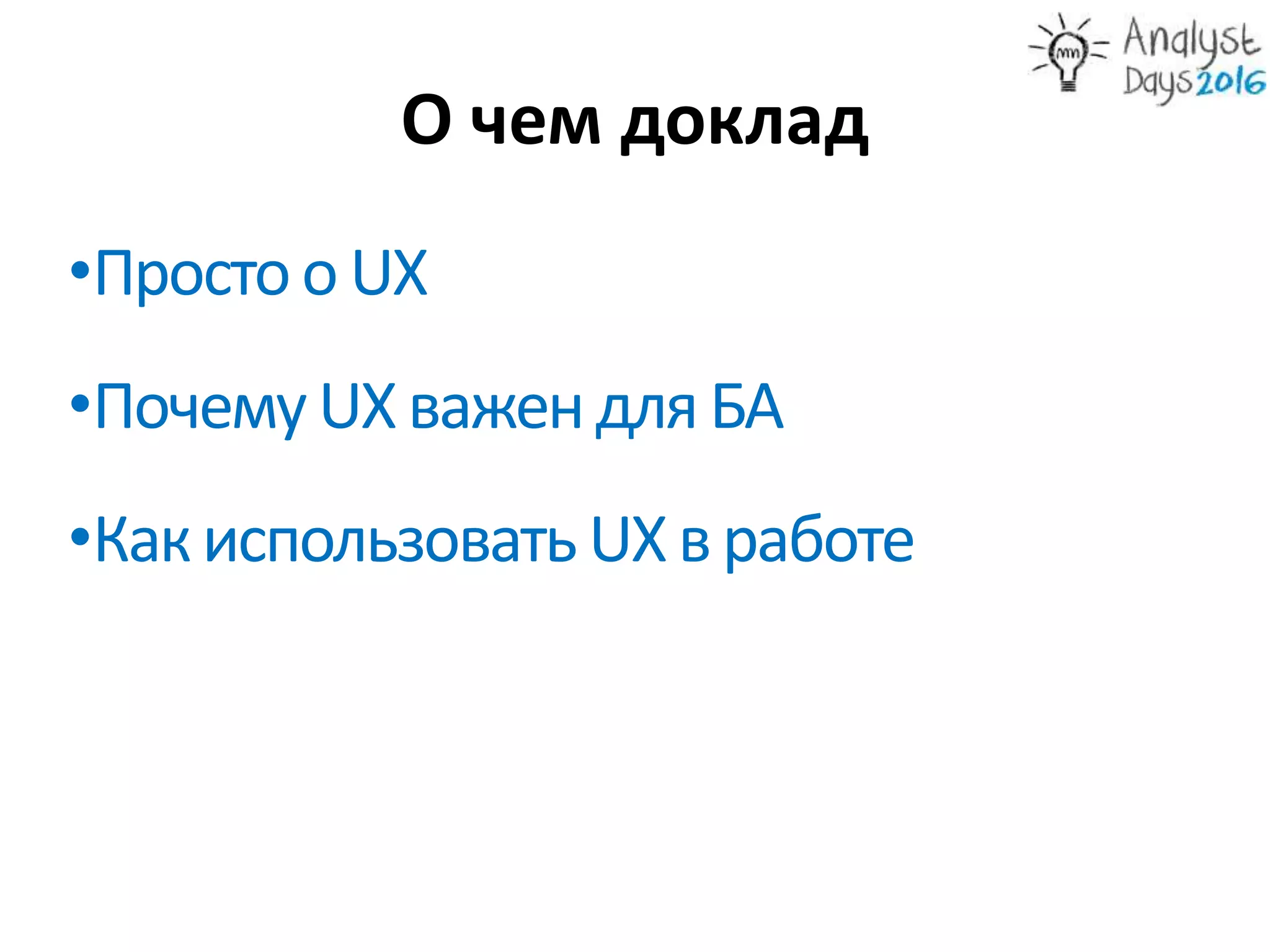 Доклад посвящен важности UX-дизайна в бизнес-анализе, подчеркивая его значимость для успешных продуктов и взаимодействия с потребителями. Автор, Петр Тисиневич, делится опытом более 10 лет в управлении командами и предлагает методы, как эффективно использовать UX для управления ожиданиями и оценки пользовательского опыта. Основное внимание уделяется командной работе и анализу заинтересованных лиц для создания интуитивных и удобных продуктов.