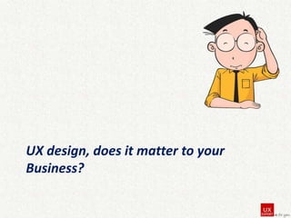 The document discusses the importance of user experience (UX) in product design, emphasizing the need for user and business needs alignment. It outlines various consultancy services offered by UXExpert, including UX audits, tailored corporate training, and usability evaluations. The goal is to enhance user interactions and satisfaction across digital products and services.