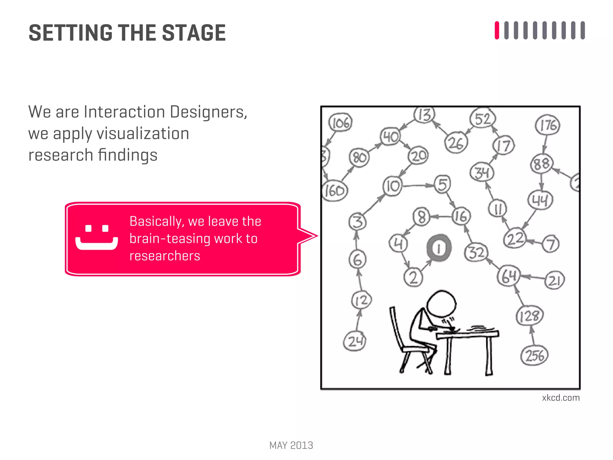 The document discusses visual communication in UX research and design. It provides examples of different types of visualizations used at various stages of the design process, including workflows from contextual inquiries, personas to represent user research findings, process maps of user journeys, concept maps to illustrate design concepts, and charts and graphs to report evaluation findings from user surveys. The document also discusses principles for effective visualization based on Gestalt laws and provides resources for visualization inspiration and tools.