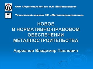 Документ описывает новые нормативные изменения в области металлостроительства в Украине, включая создание национального органа стандартизации и внедрение национальных стандартов и кодексов. Обсуждаются новые строительные нормы и стандарты, а также гармонизация требований с законодательством Европейского Союза. Кроме того, документ перечисляет основные требования к проектированию, монтажу и контролю качества металлических конструкций.