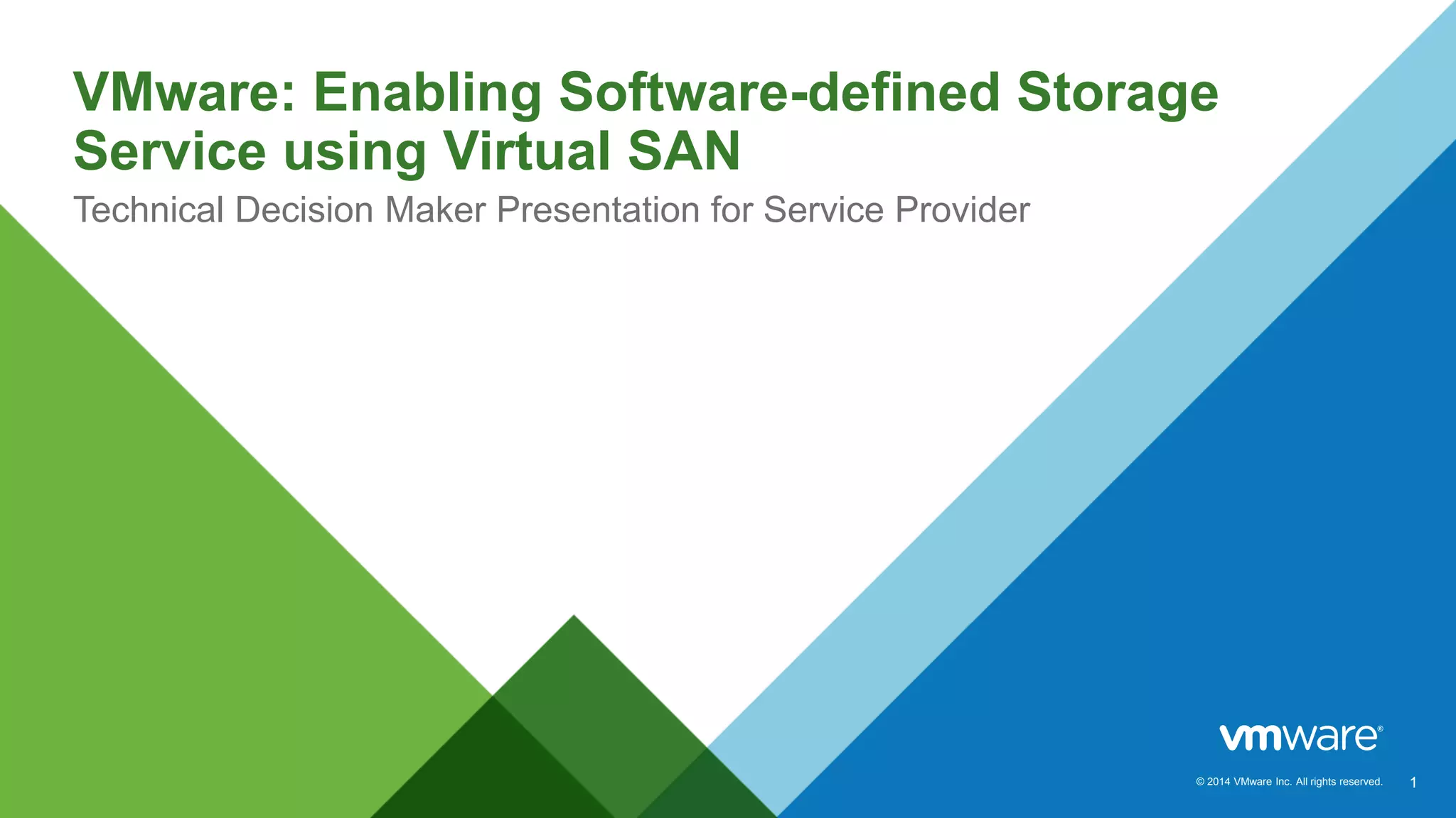 VMware Virtual SAN is a software-defined storage solution that is built into vSphere and pools flash-based devices and magnetic disks from standard servers into a shared datastore. It delivers high performance, is highly resilient with zero data loss even during hardware failures, and provides a simplified storage management experience through storage policies applied at the virtual machine level. Virtual SAN supports a variety of use cases including virtual desktop infrastructure, test/development environments, and business critical applications through its scale, performance, integration with VMware technologies, and interoperability with solutions such as Horizon View, vSphere Replication, and OpenStack.