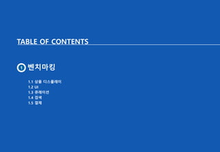 reserved. This Document is copyrighted by Hongyoungjoo, Inc. and may not be reproduced without permission. TABLE OF CONTENTS 1 벤치마킹 1.1 상품 디스플레이 1.2 UI 1.3 큐레이션 1.4 검색 1.5 결제