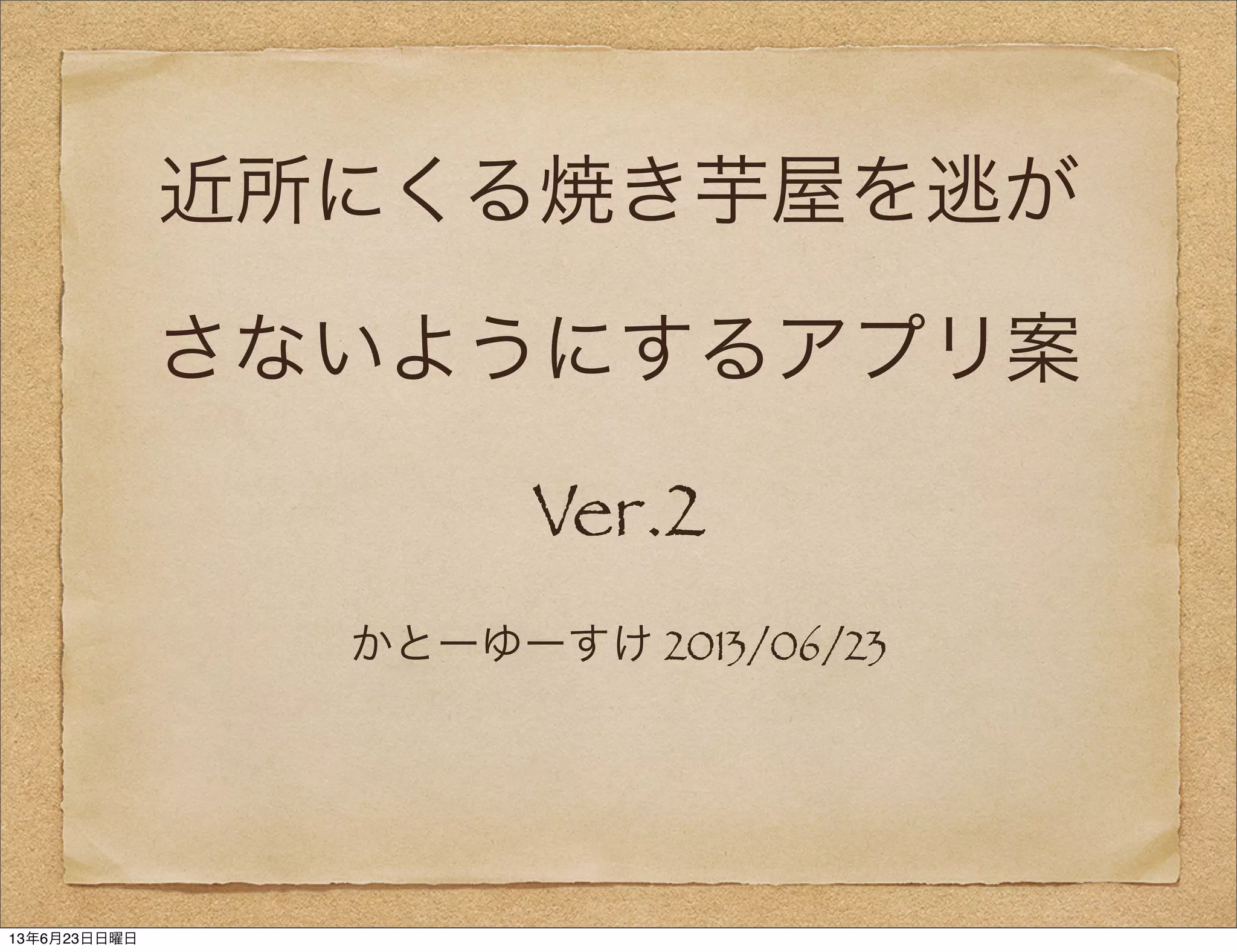 近所にくる焼き芋屋を逃が さないようにするアプリ案 Ver.2 かとーゆーすけ 2013/06/23 13年6月23日日曜日