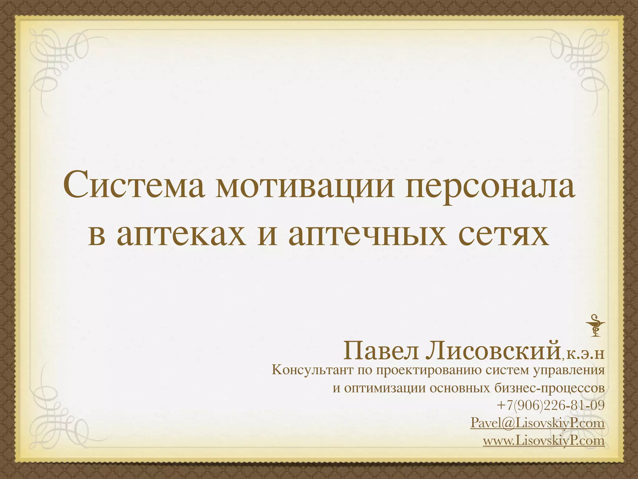 Документ посвящен системам мотивации персонала в аптечном бизнесе, включая определение мотивации, ее факторы и последствия правильного функционирования системы. Также рассматриваются методы мотивации, включая двухфакторную теорию Герцберга, и алгоритм внедрения мотивационных схем для повышения эффективности работы и клиентского сервиса. В завершение, подчеркивается важность адаптации системы мотивации к стратегическим целям компании и контроля ее эффективности.