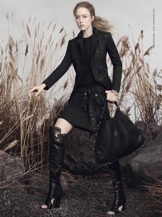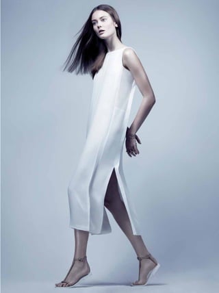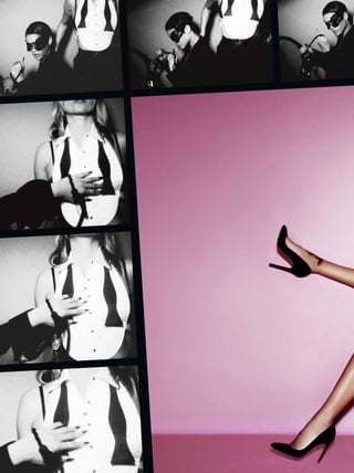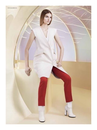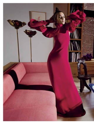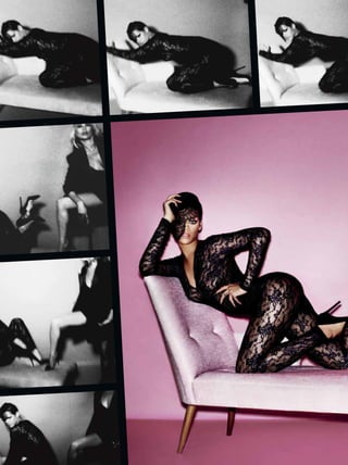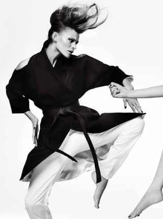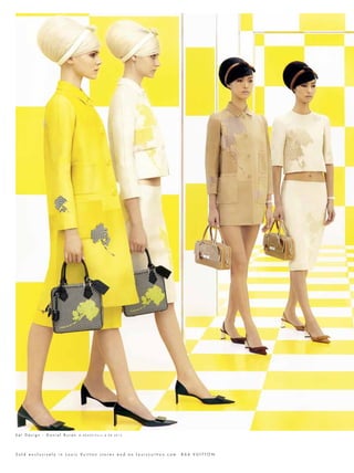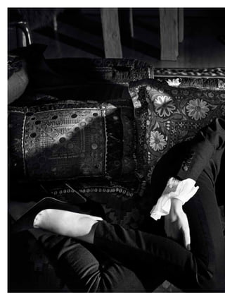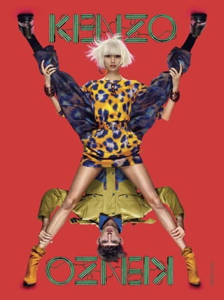 The document appears to be from a fashion magazine, featuring articles and photos related to fashion duos, pairs, and dynamic collaborations. It includes a cover story on Kate Moss and Rihanna photographed by Mario Testino, as well as features on other famous pairs working in fashion together, such as Yoko Ono and Sean Lennon. The magazine highlights the creative output and influence of working collaboratively between two people in the fashion industry.