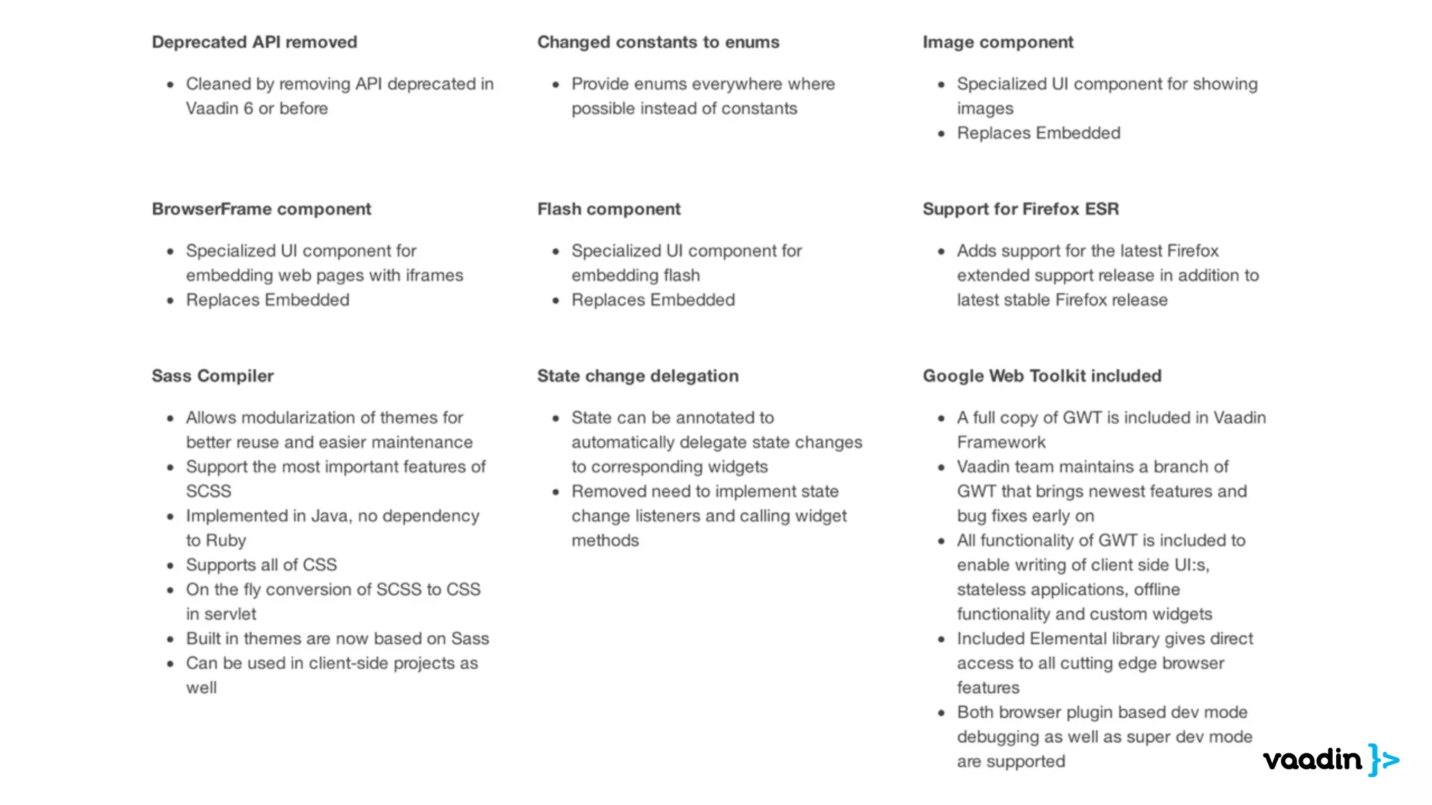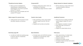 2. Key features include rich UI components, support for any JVM language, no browser plugins required, and embracing of Java standards.