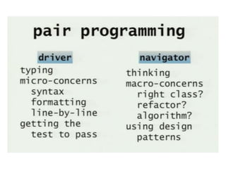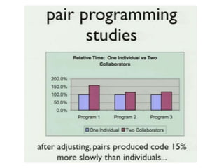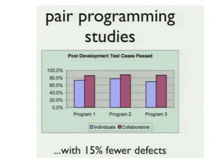 The document outlines various proposed improvements for a software development team including: 1. Increasing pair programming and brainstorming sessions to improve communication, collaboration and learning. 2. Starting a video club to discuss movies and materials to enhance design sessions. 3. Changing seating arrangements periodically. 4. Holding weekly coding sessions on Sundays for lightning talks and coding dojos to practice new skills. 5. Creating a process for tracking actions from retrospective meetings with photos, details and status updates.