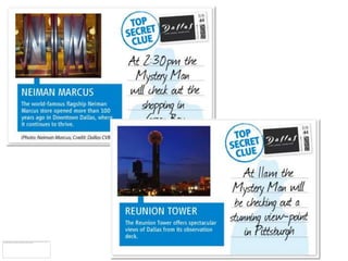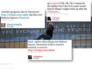 This document discusses how communities are bonded by common passions and overlapping interests. It notes that passions, influencers, and communities reinforce one another. The document advocates getting people talking about a city through remarkable experiences that bring out the best in people. It shares a quote from someone who found a promotion to be an absolutely fun and memorable experience, approaching strangers without fear or judgement. The document concludes by thanking the reader and providing contact information.
