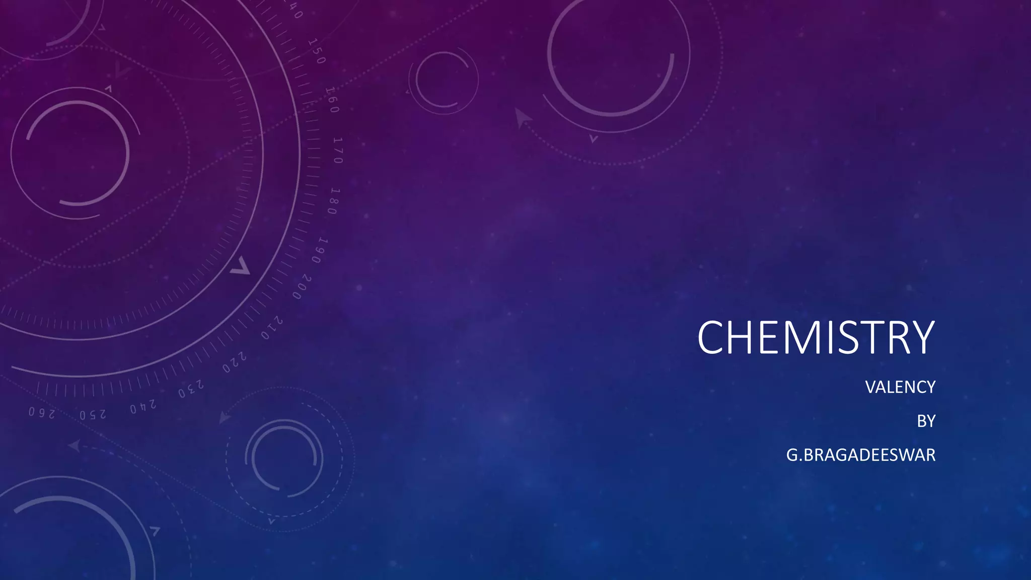 Valency refers to an element's combining power when forming compounds, and is determined by the number of electrons in the outer shell. Elements in the same group of the periodic table share the same valency, as shown in the valency table where group number corresponds to valency. Valency was developed in the 19th century to explain molecular structures of inorganic and organic compounds.
