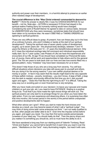 Valentin Tomberg was a Russian-born esoteric thinker who was initially interested in Anthroposophy but later converted to Catholicism. He authored two masterworks - "Christ and Sophia", which provides an Anthroposophical analysis of the Bible, and "Meditations on the Tarot", a profound but enigmatic work. While Tomberg's writings provide many illuminating insights, some argue they place too much emphasis on hierarchical authority and obedience over individual freedom and understanding. The document also discusses the evolution of human consciousness and decision-making in spiritual development.