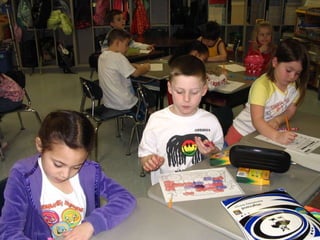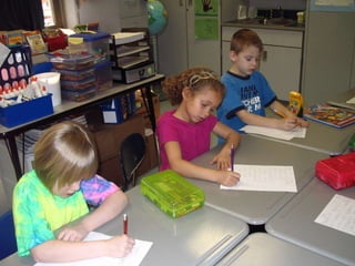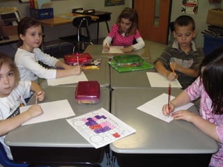 Valentine's Day activities focused on reading in the morning, where students learned about long, short, and other vowel sounds by looking at red, pink, and purple paper hearts.