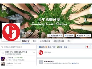 你認識台中嗎?從小我們都沒有一個正確的方式可以認識自己的家鄉、在地,我們的生活就是學校、補習班跟家裡,因此我們從不敢說自己多認識自己的土地。但,不認識自己的土地又會產生什麼樣的影響?連結弱、沒有歸屬感、孤單、發展受到限制…所以,我們要怎麼樣解決這個問題?是在地的媒體嗎?做一件事情之前,必須衡量自己的經歷跟能力活動,可以讓人親自到現場,認識人,強連結;活動,理念傳達,故事分享