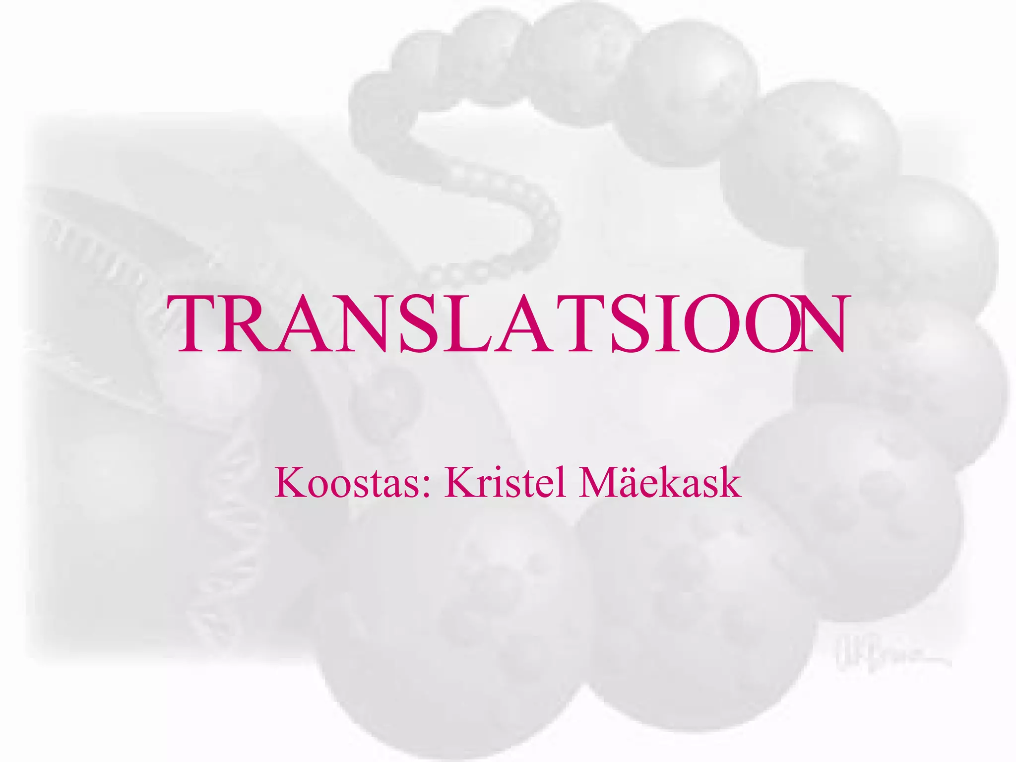 Translatsioon -RNA alusel valgu süntees tsütoplasmas paiknevatel ribosoomidel: RNA-lt valk Vajalikud tingimused: ribosoomid, mRNA, tRNA, aminohapped, energiat (ATP,GTP), ensüümid aminohapete aktiveerimiseks, nende seostumiseks tRNA-ga ja peptiidahela sünteesiks mRNA primaarstruktuur määrab ära valgu primaarstruktuuri