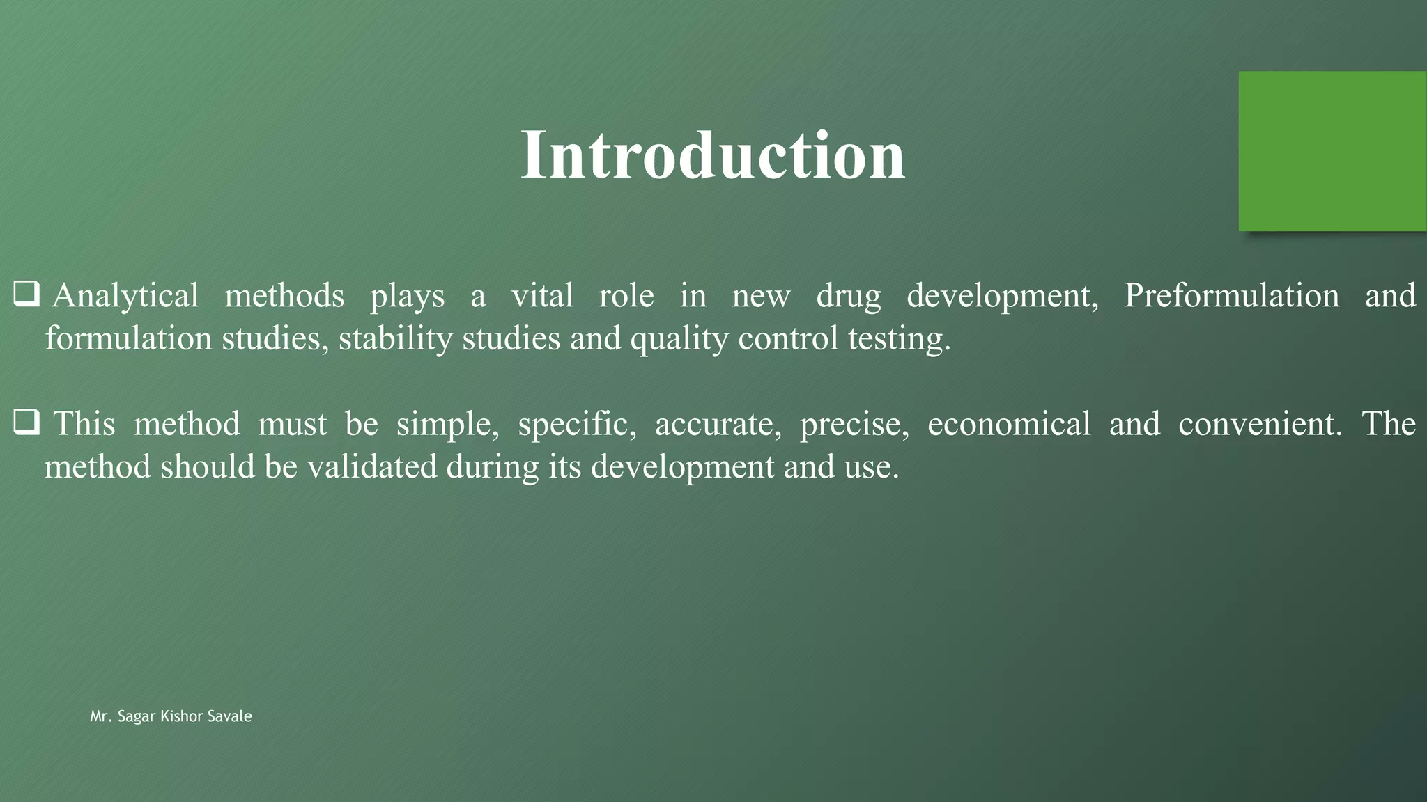 The document outlines the critical role of analytical method validation in drug development, emphasizing its necessity for ensuring accuracy, precision, and reliability in results. It details the validation process, considerations, and various parameters like accuracy, precision, specificity, linearity, and ranges alongside published guidelines from regulatory authorities. Additionally, it discusses concepts like limit of detection (LOD), limit of quantitation (LOQ), robustness, and the importance of appropriate training and documentation.