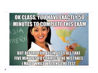 Validity refers to a test accurately measuring what it intends to. Content validity means a test samples relevant skills, while criterion-related validity compares test scores to external criteria. Reliability means a test gives consistent results. Key factors for reliability include multiple test items, clear instructions, uniform administration conditions, and scorer reliability through objective scoring and scorer training. While reliability ensures consistent results, a test may be reliable without being valid if it does not accurately measure the target construct. Both validity and reliability are important for effective test design and interpretation.