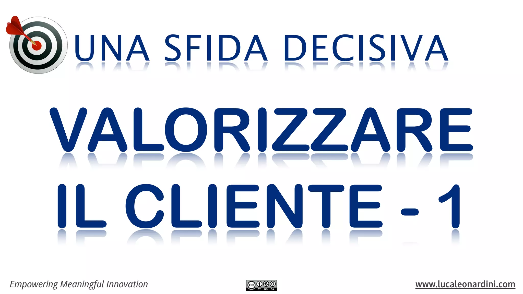 Il documento sottolinea l'importanza di mettere il cliente al centro delle strategie aziendali per migliorare la soddisfazione e generare profitto. Viene evidenziata la necessità di un cambiamento per affrontare le sfide del mercato e il valore del miglioramento continuo per ottimizzare i processi e rafforzare la competitività. Infine, si propone l'adozione di approcci innovativi, come il framework Slingshot, per esplorare nuove opportunità di mercato.