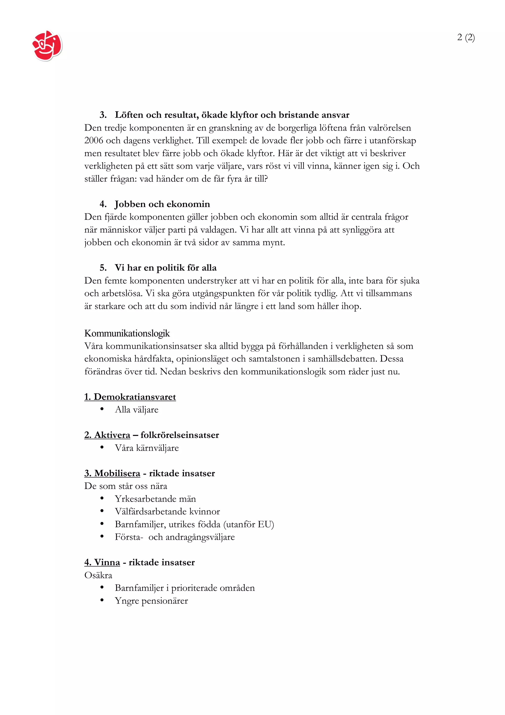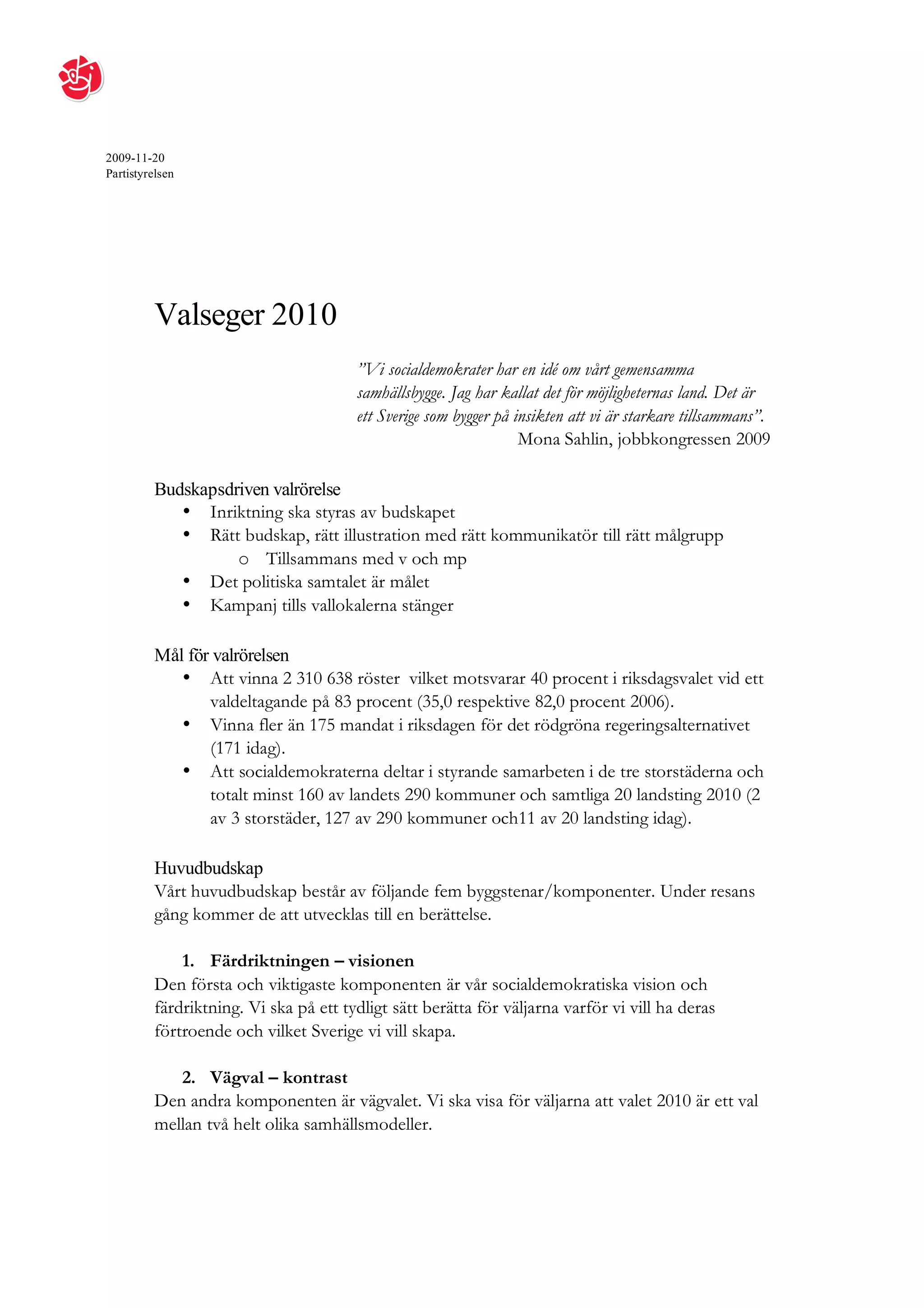 Den andra komponenten är vägvalet. Vi ska visa för väljarna att valet 2010 är ett val