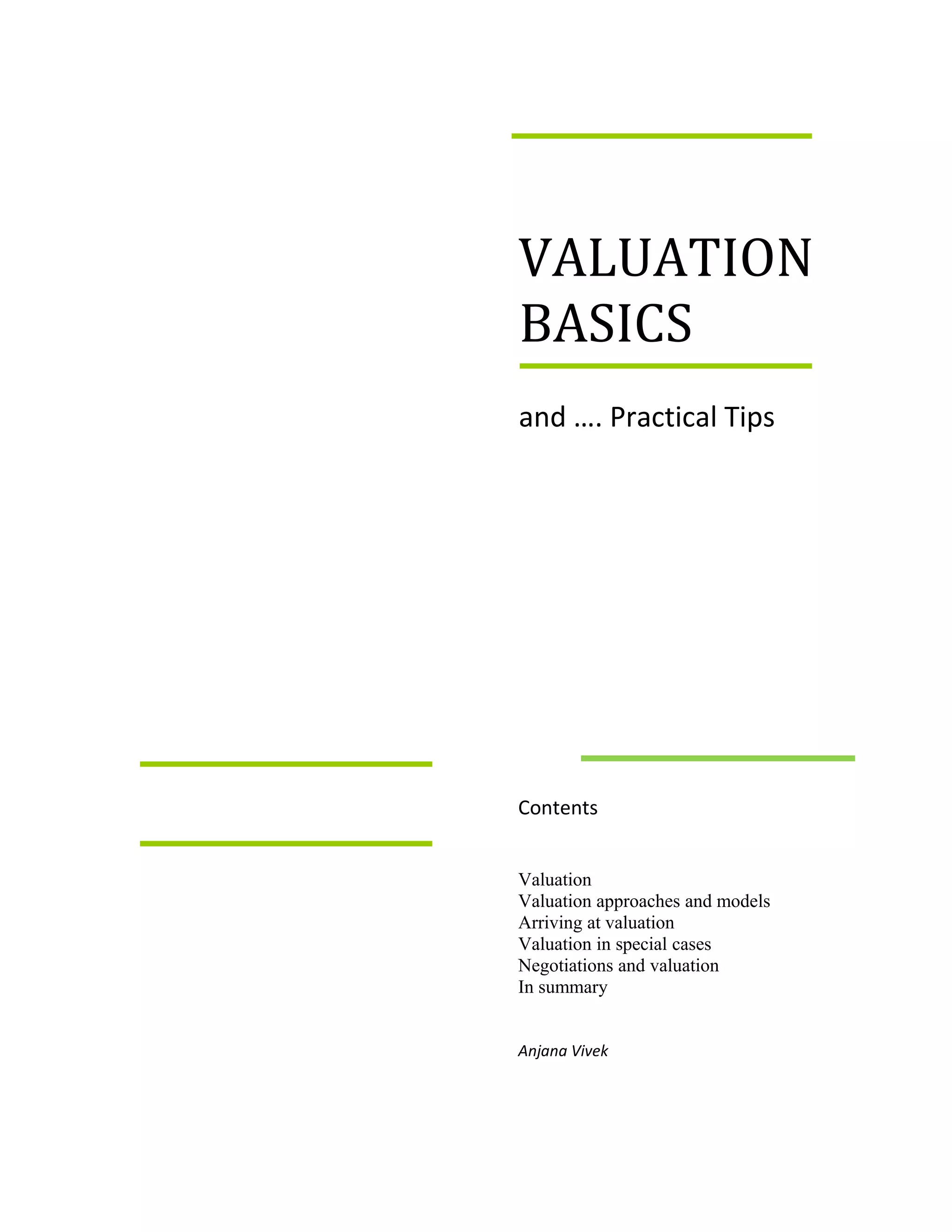 The document discusses the complexities of business valuation, outlining various methods such as cost-based, income-based, and transaction multiples. It emphasizes that valuation is influenced by numerous factors including market conditions, the unique characteristics of the company, and negotiation skills between buyers and sellers. The document also highlights the need for careful selection and application of valuation methods depending on the specific circumstances surrounding the business in question.