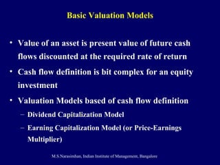 2. The earnings capitalization model values a stock based on its expected future earnings divided by the required rate of return.