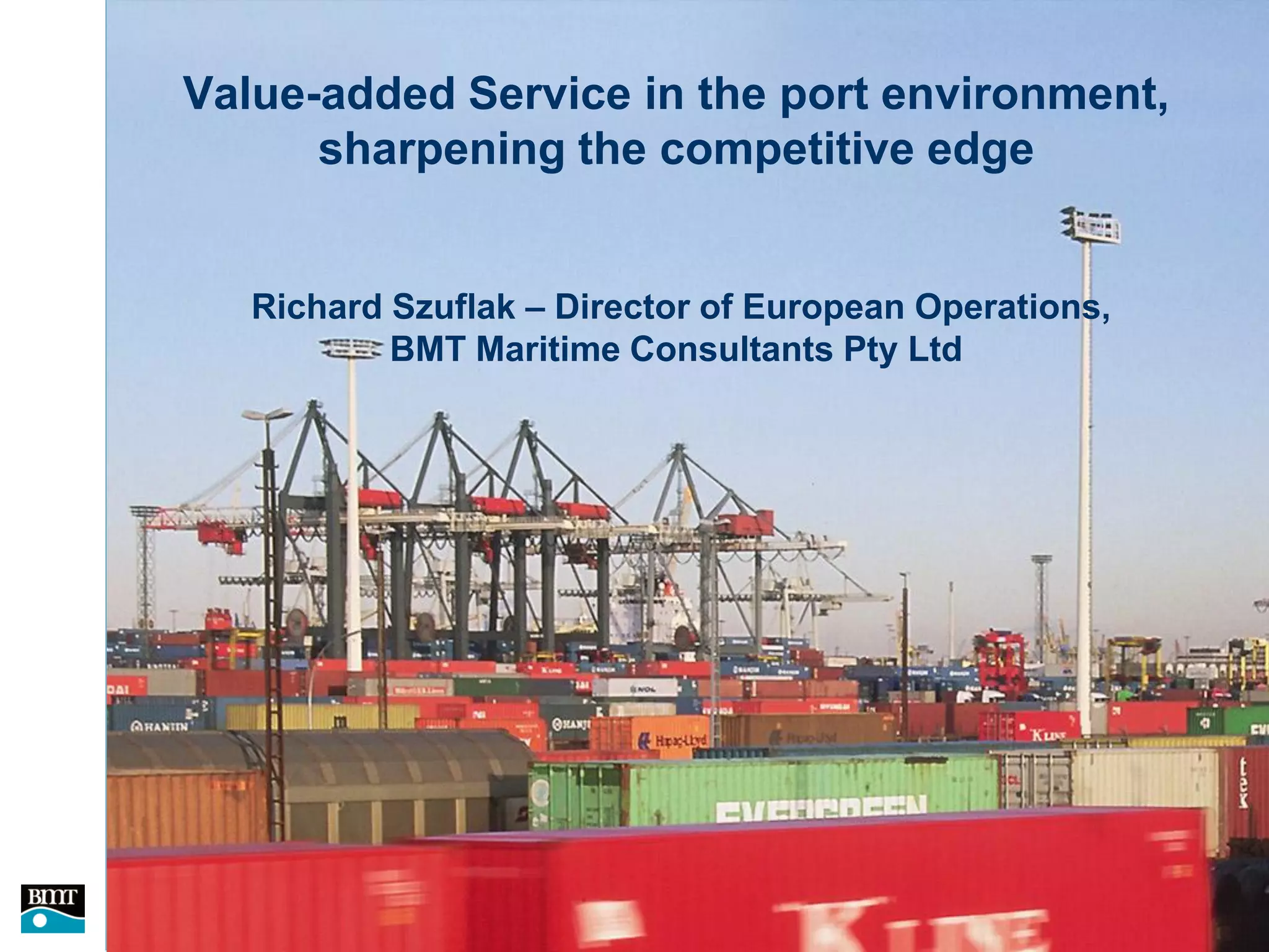 This document discusses value-added services that ports can provide to sharpen their competitive edge. It defines value-added services as any service that differentiates a port from its competitors and increases loyalty. The document provides examples of value-added services ports have implemented, such as improved hinterland connections, dedicated operations for customers, and controlling the logistics chain after cargo leaves the port. It recommends ports identify value-added services by understanding their customers and competitors better to enhance their market position.