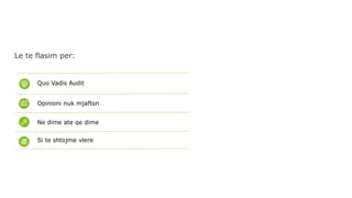 Through this presentation in the conference organized for the 20 years anniversary of IEKA, I outline some of the ways in which auditors can expand their role in the future in a meaningful way for businesses in Albania and the region.