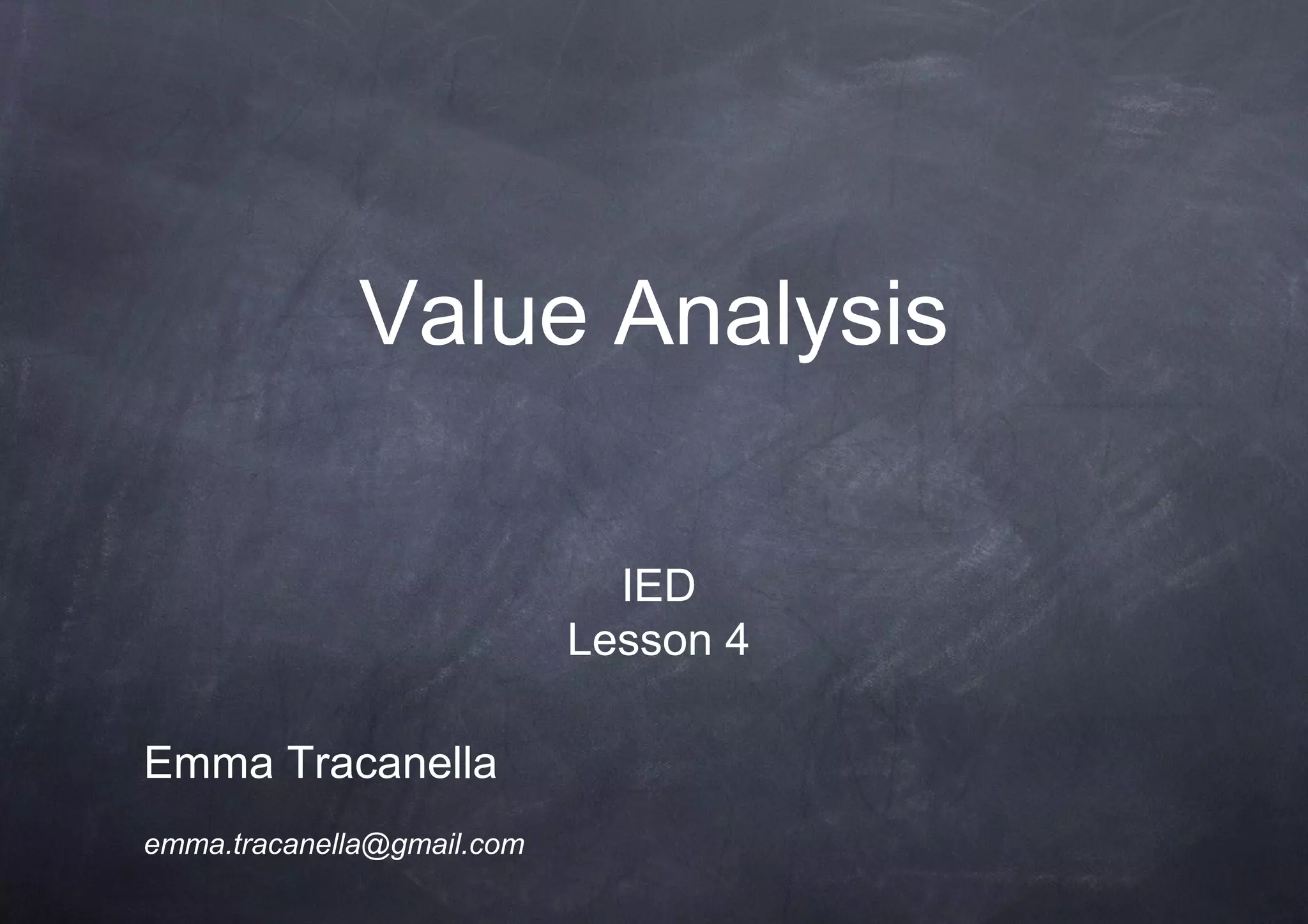 Value Analysis IED Lesson 4 Emma Tracanella emma.tracanella@gmail.com