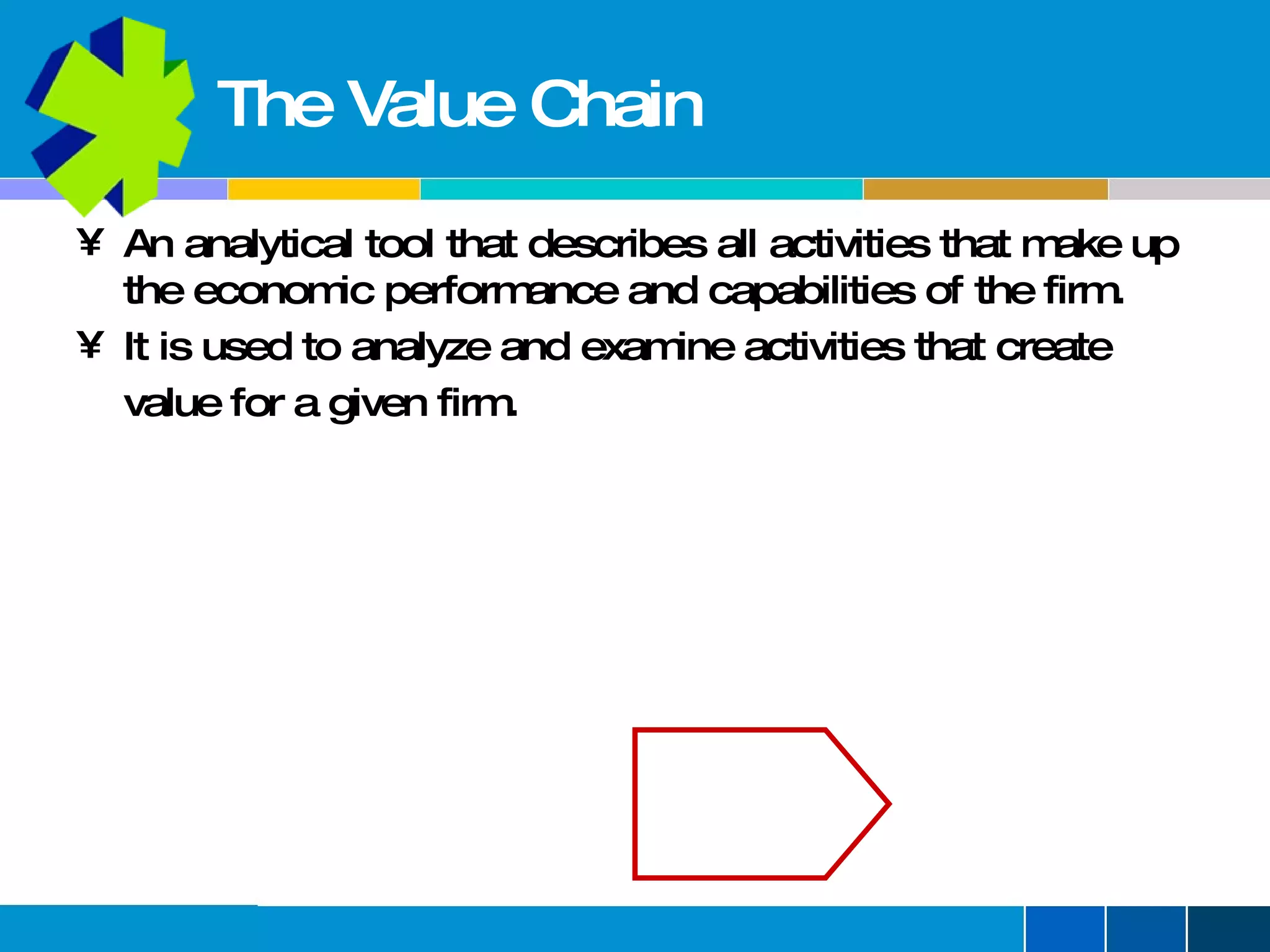 The document discusses Michael Porter's value chain model, which describes the activities within a firm that create value. It analyzes both primary activities, such as operations and logistics that are central to creating a product, and support activities like procurement and infrastructure. Examples are given of value chain analyses for the pizza restaurant and automotive industries. The value chain can be used to examine how activities create value and where a firm has competitive advantages.