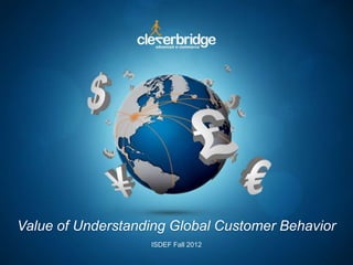 The document discusses understanding global customer behavior by examining behaviors in four countries/regions: America, Germany, the UK, and Japan. For each location, it provides an overview and then discusses considerations for pricing/landing pages, customer service information, payment methods, and other localization factors. The key aspects are minimizing information overload, using appropriate languages and currencies for locations, and customizing products, services and experiences for different cultural expectations.