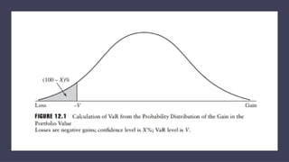 2. VaR was introduced in the 1990s as a tool to measure risk in financial portfolios and determine adequate capital levels. It has since become widely used by financial institutions.