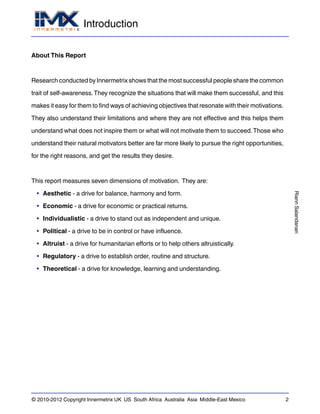 Riann's Values Index report summarizes her motivations across 7 dimensions: Aesthetic, Economic, Individualistic, Political, Altruistic, Regulatory, and Theoretical. Riann's highest scores are in the Economic, Altruistic, Regulatory, and Theoretical dimensions, indicating she is highly motivated by practical returns, helping others, structure, and learning. Her other scores are average, suggesting a balanced approach. The report provides insights into Riann's motivations to help her maximize performance alignment and passion in her work.