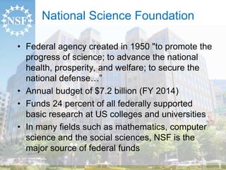 science and the social sciences, NSF is the