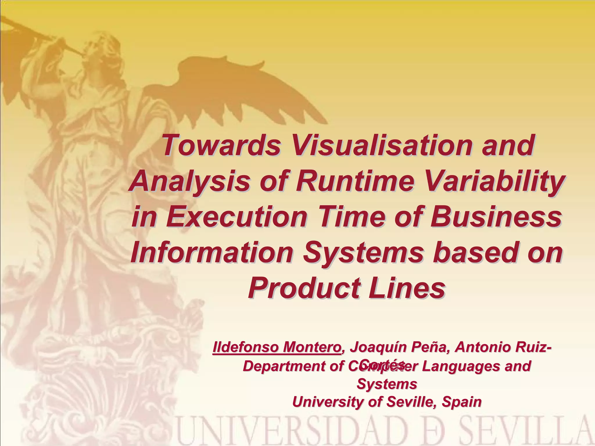 This document discusses an approach to visualizing and analyzing variability in the execution time of business processes based on product lines. The approach defines business processes using products, allowing for higher-level questions and visualizations. It presents a conceptual framework for researching the analysis of business process definitions through timing diagrams and visualization versus analysis. The goal is to visualize and analyze business process definitions to understand variability from inclusion and exclusion of subprocesses in different contexts.