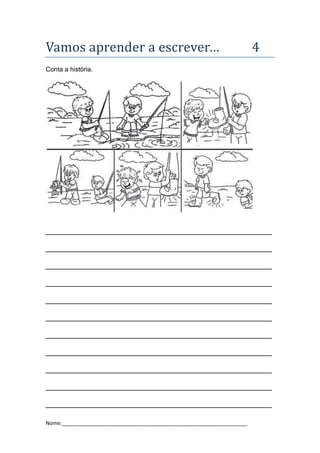 This short document discusses learning to write and tells a story. It provides instructions to "let's learn to write" and "tell the story." No other details are given.