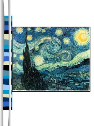Vincent Van Gogh is known for several famous paintings including Starry Night, a night sky filled with swirling stars and the crescent moon. He also painted many Self Portraits that provided intimate views into his inner thoughts and struggles. Another well-known work is Sunflowers, a bright painting of a bouquet of sunflowers in a vase.