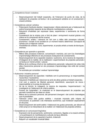 · Participar en projectes musicals col·lectius, mostrant bons hàbits de treball
