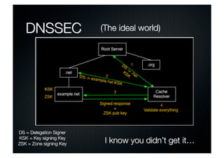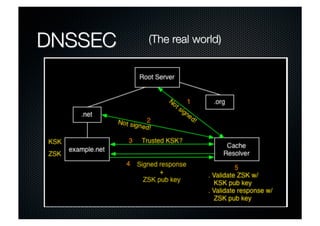 The document discusses a DNSSEC-aware cache resolver configuration. It includes examples for two domains: example.net and another.net. The references to 'message' suggest settings or parameters related to DNSSEC operations.
