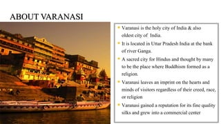 Varanasi, one of India's oldest cities, is a sacred site for Hindus located on the banks of the Ganges River and is renowned for its cultural heritage, religious significance, and silk production. The city features numerous architectural landmarks, including the river's 83 ghats and the Ramnagar Fort, and is also the site of important Buddhist pilgrimage locations such as Sarnath. Prominent figures associated with Varanasi include former Prime Minister Lal Bahadur Shastri and musician Ustad Bismillah Khan, highlighting the city's rich historical and contemporary influence.