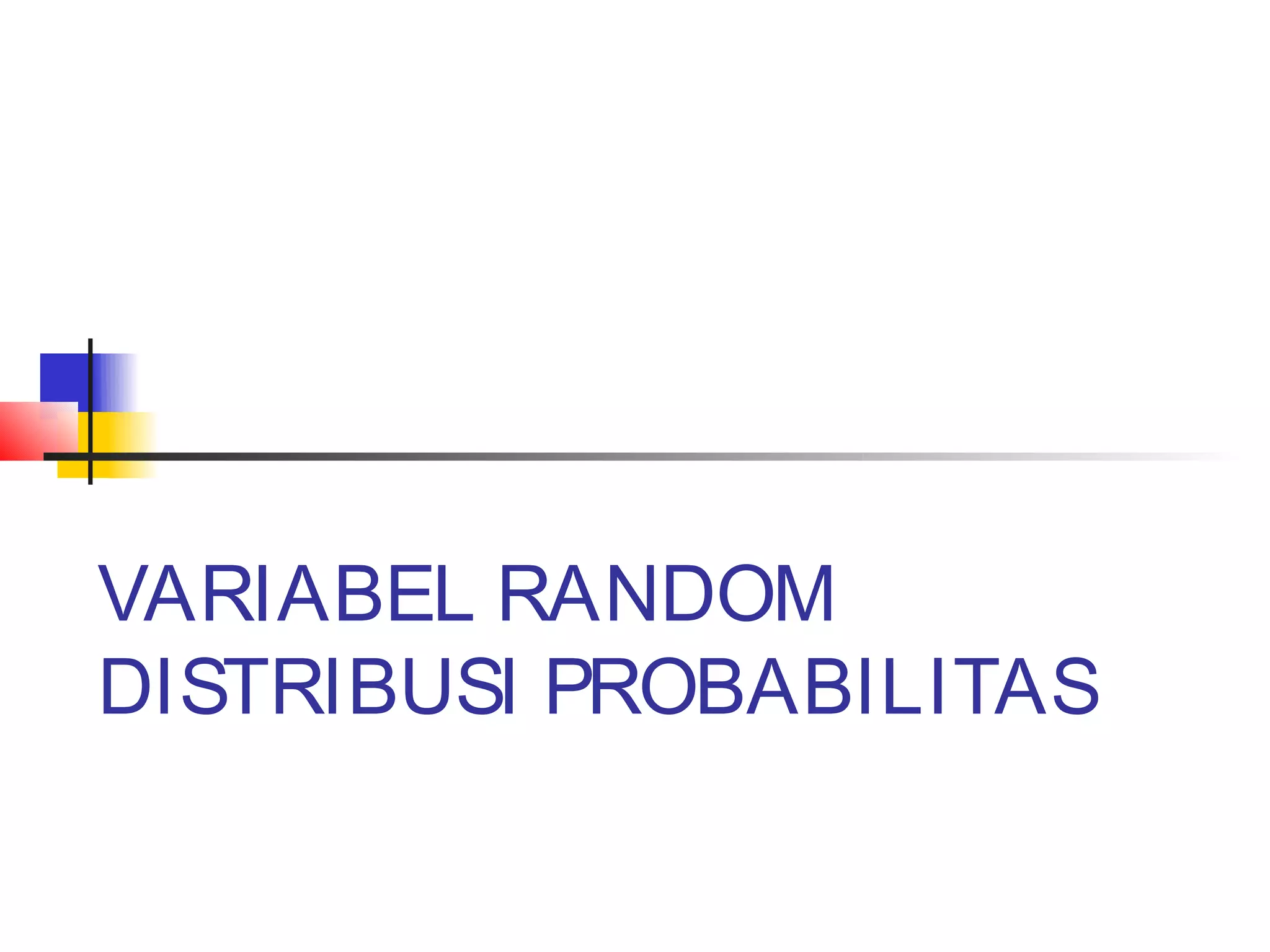 Variabel random merupakan fungsi yang mengasosiasikan bilangan real ke setiap unsur ruang sampel. Dokumen menjelaskan definisi variabel random, contoh distribusi probabilitas satu dan dua variabel random, serta distribusi marginal dan bersyarat.