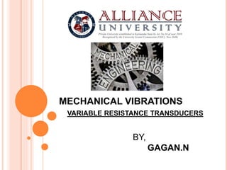Variable resistance transducers, also known as resistive transducers, are commonly used to measure physical quantities like temperature and displacement by altering resistance based on conductor length and cross-sectional area. Devices like sliding contact devices, thermistors, and thermocouples utilize this principle, each serving unique measurement functions. The resistance changes of certain materials with temperature shifts make these transducers particularly valuable in various engineering applications.