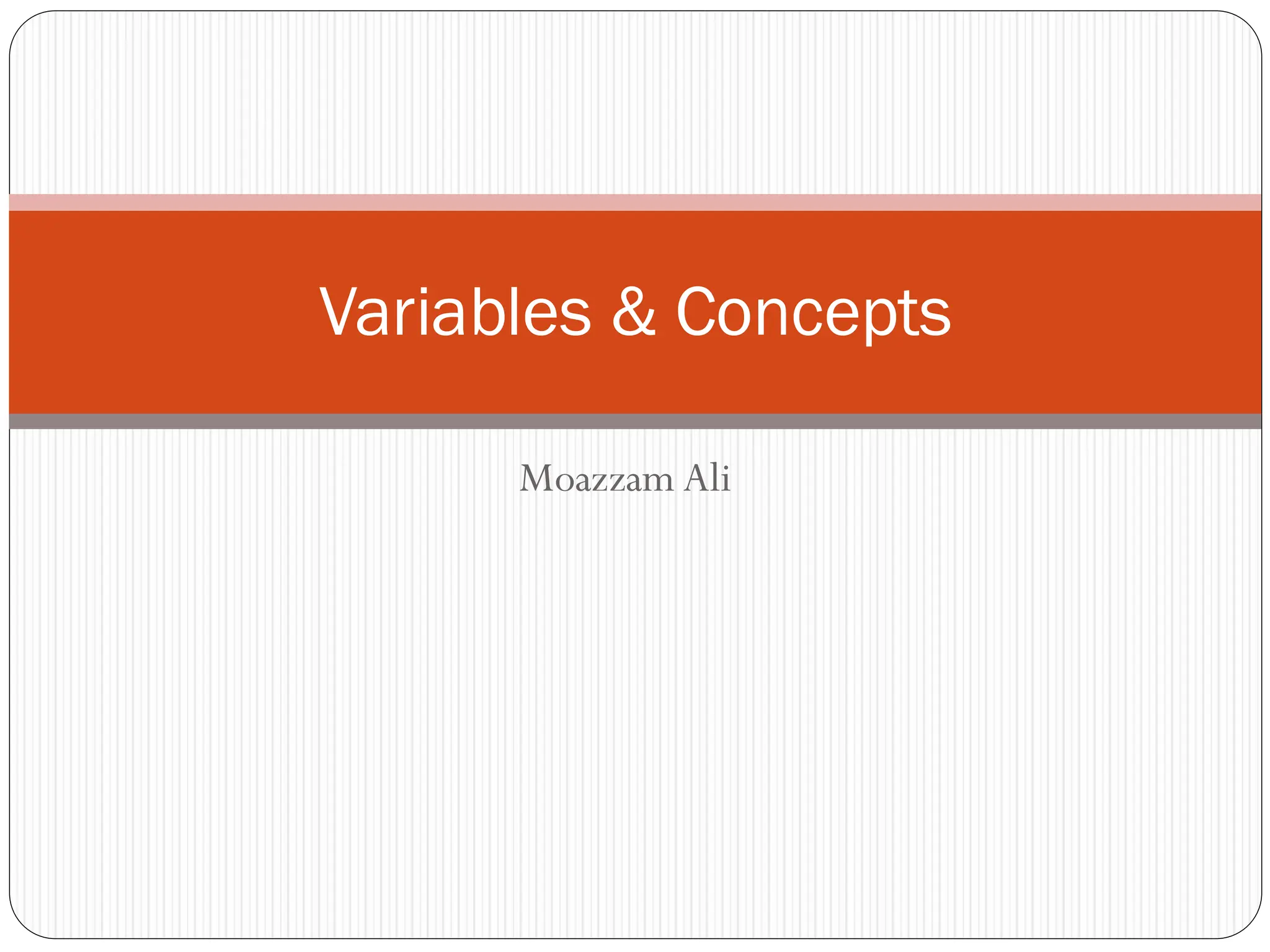 The document discusses the distinction between concepts and variables in research, emphasizing the need for operationalization to measure concepts effectively. It highlights the importance of identifying indicators that can be converted into measurable variables, as well as explaining various types of variables such as independent, dependent, and extraneous variables. Additionally, it provides examples to illustrate the relationship and measurement of concepts and variables in research.