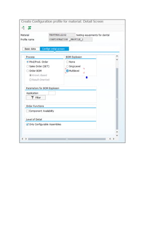 4. In the profile, define price dependencies between characteristics, like setting the price to a certain value based on the selected color. This allows creating sales orders that automatically configure the car with a specific preset color and price.