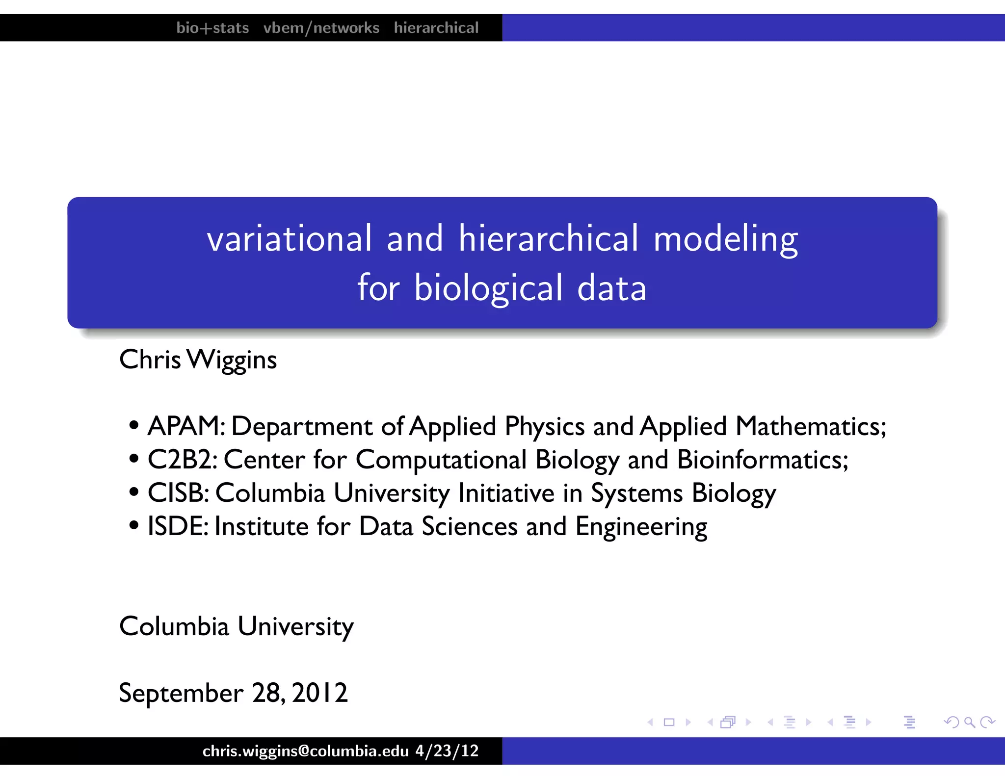 This document discusses hierarchical variational Bayesian methods and their applications in modeling biological data, particularly in network analysis. It addresses challenges such as overfitting and resolution limits in community detection within biological and social networks. The presentation is supported by algorithms and formulations for generative models, highlighting the importance of variational methods in inference and model selection.