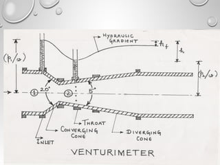 A rotameter is a flow measurement device consisting of a conical glass tube and a float, which indicates the flow rate based on its position. It requires no external power, is easy to manufacture, and operates linearly with flow rate changes. Other flow measurement devices discussed include venturimeters, electromagnetic flowmeters, and positive displacement flowmeters, each with unique working principles and applications.